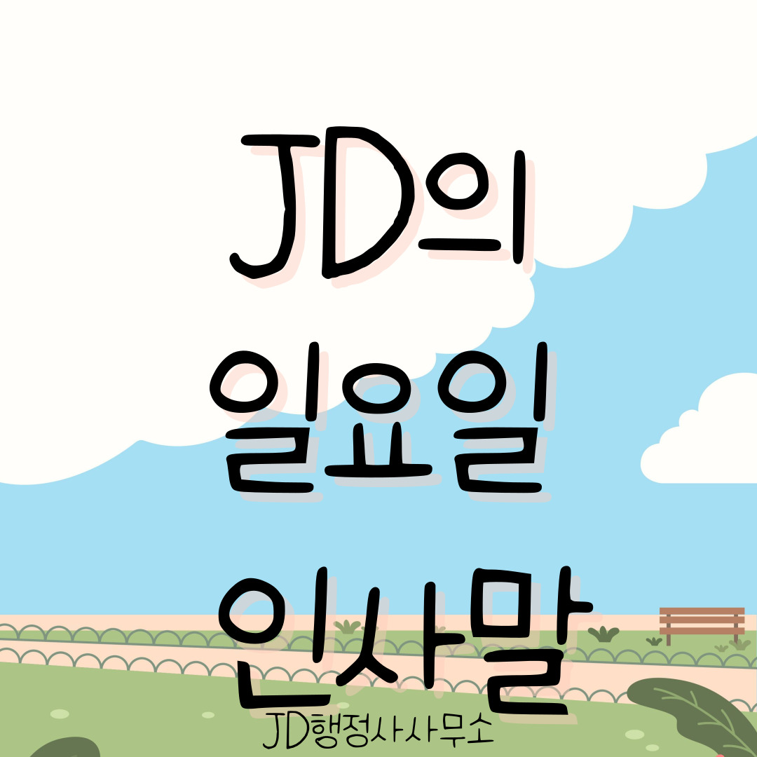 안녕하세요. 오늘은 일요일 인사말을 주제로 글을 준비했습니다. 한 주의 마지막 날인 일요일은 휴식과 충전, 그리고 새로운 주간을 준비하는 의미가 있습니다. 따뜻한 일요일 카톡 인사나 문자 메시지를 나누면 가족과 친구, 직장 동료 모두가 더 평안한 하루를 보낼 수 있습니다. 특히 진천·음성·괴산·보은 행정사 JD는 의뢰인과의 상담에서도 늘 격려와 위로의 인사를 건네며 신뢰를 쌓아가고 있습니다.