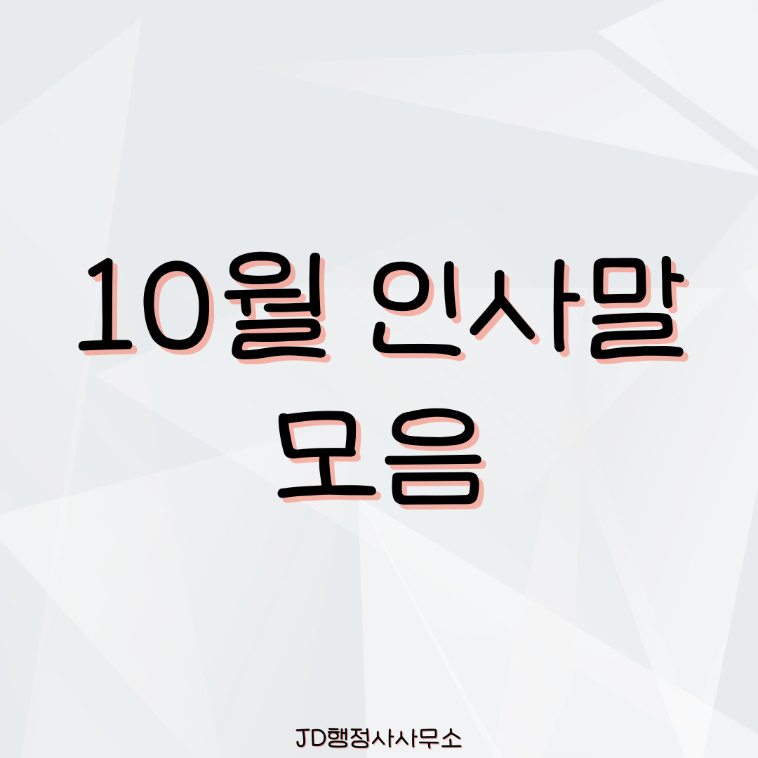 10월 인사말 모음입니다. 카톡·밴드·라인 단체방과 문자·이미지 캡션에 바로 사용할 수 있는 따뜻한 가을 문구 50선을 정리했습니다. 아침·점심·저녁·상황별 문구로 구성하여 10월 출근 인사말, 주말 인사말, 가을 감성 인사말을 한 번에 확인하세요.